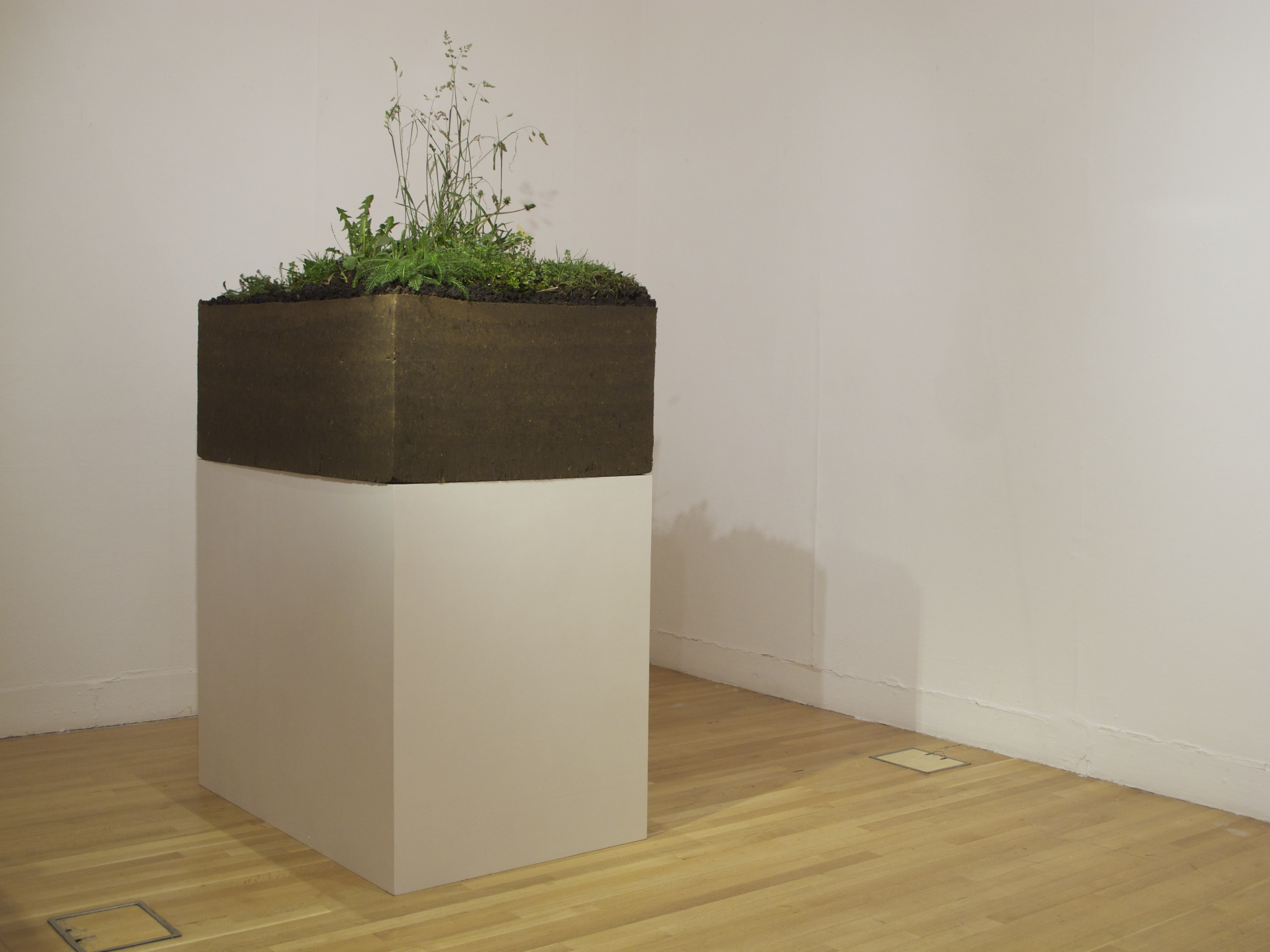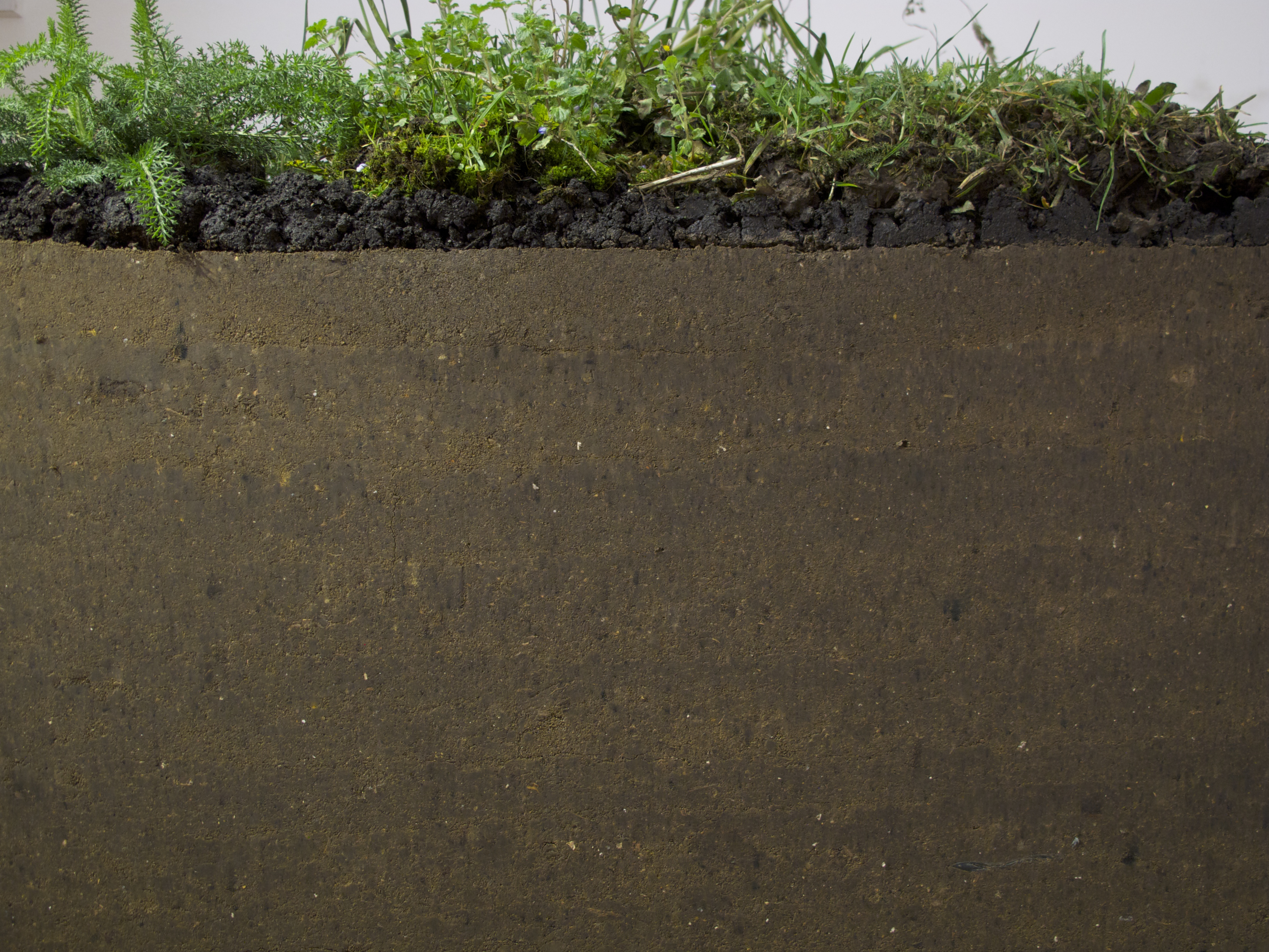 1000kg rammed earth, topsoil, harvested pioneer plants, grow lamp